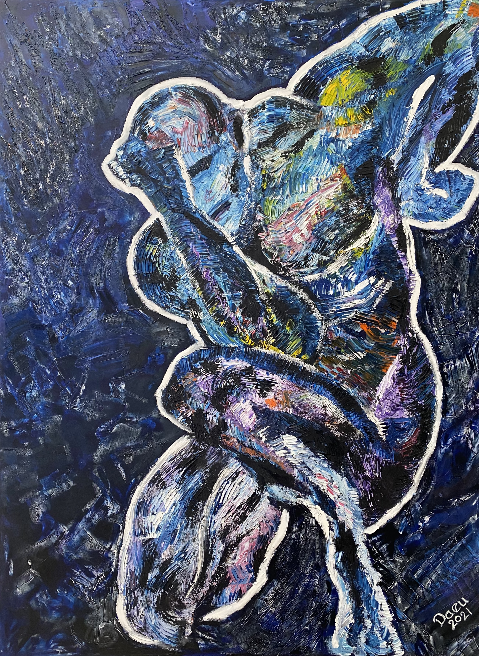 Superhero Thinking, an original oil painting by Daeu Angert